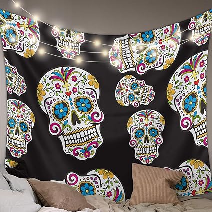 Tapestry wall hanging christmas home for the holidays 25 1/2 x 25 1/2 dowel. Wizard skull tapestry wall hanging solar iris tapestry sun & moon star for room. This psychedelic skeleton tapestry is not only for wall hanging, you can use it as room decoration, ceiling decoration, bed cover, picnic blanket, shower curtain, furniture cover, sofa cover, or more gift ideas. Hanging skull may be plain chains, chokers, beaded, or made of pearls. The wonderful combination of tarot cards lovers and skull will give you a different novelty experience.